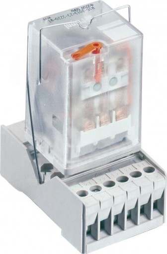 R15-2013-23-5230-WT Przekaźnik elektromagnetyczny, przemysłowy - małogabarytowy, do gniazda wtykowego. Szerokość 35 mm. Wyjście: 3P - trzy zestyki przełączne - wyprowadzenia: 11(1)-12(4)-14(3), 21(6)-22(5)-24(7), 31(11)-32(8)-34(9), AC1 - 10 A / 250 V, DC1 - 10 A / 24 V. Wejście / cewka - wyprowadzenia: A1(2) - A2(10), napięcie zasilania Un - 230 V AC. Wskaźnik zadziałania mechaniczny W, przycisk testujący T - z funkcją blokowania styków. Wymiary: 35 x 35 x 54,4 mm. IP 40. Materiał styków: AgNi. Wymiary zestawu R15 3P + gniazdo PZ11 + obejma PZ11 0031: 68,2 x 38 x 82,6 mm. Zestaw - IP 20. Wymiary innych zestawów wskazane są w opisie wybranego gniazda.