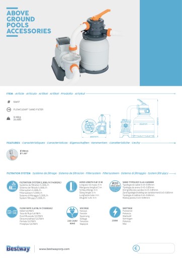 Model przeznaczony do basenów o pojemności 1100-42300 l.