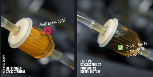 - Zastosowanie K2 Diesel Dictum nie jest trudne. Zaopatrując się w filtr paliwa i gumowy wężyk możemy operację czyszczenia przeprowadzić samodzielnie.