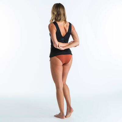 Zespół surferek na różnych poziomach umiejętności stworzył ten damski kostium kąpielowy dla początkujących, surfujących w przybrzeżnej fali. Kobieca góra kostiumu kąpielowego tankini z dekoltem i wycięciem na plecach w V zapewnia zakrycie jak kostium jednoczęściowy, ale pozwala osobno dopasować rozmiar góry i dołu. Wyjmowane wkładki.