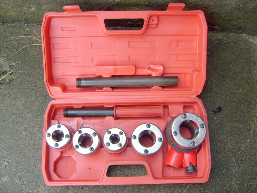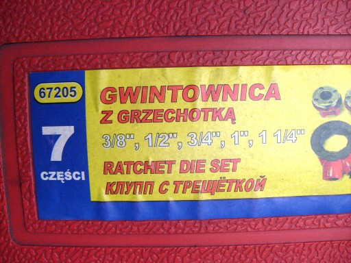 - Skład zestawu: gwintownice o średnicy 3/8”, 1/2”, 3/4”, 1”, 1 ¼”, grzechotka, rączka, przedłużka