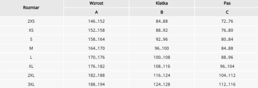 - rękawy zakończone na rzep, umożliwiające regulację ich szerokości,
