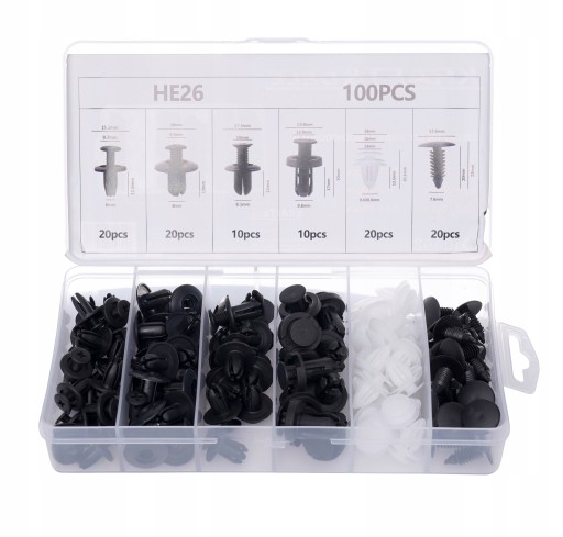 Zestaw spinek i klipsów mocujących do tapicerki 100szt wykonany z największej jakości materiałów.
