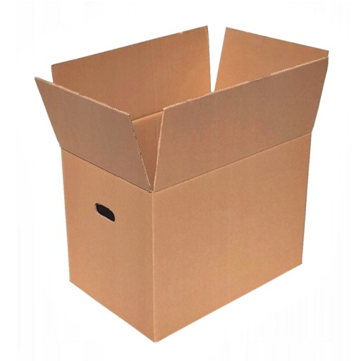Karton przeprowadzka z uchwytami do przenoszenia.