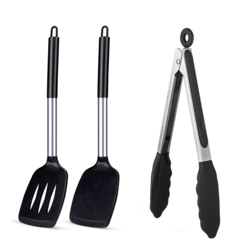 Opakowanie zawiera 2 szpatułki z otworami i solidną szpatułkę, Solidna, trwała konstrukcja z wygodnym antypoślizgowym uchwytem i silikonową główką. Przydatne do mieszania zupy, mieszania ciasta, obracania ryb, odwracania hamburgerów i naleśników i wielu innych.