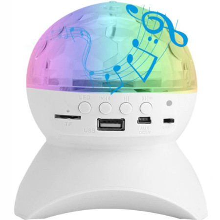 Kula disco projektor LED RGB wyposażona w najnowszy Bluetooth chip, dzięki czemu może łączyć się z telefonem komórkowym lub dowolnego Bluetooth włączone urządzenia. Ponadto kula dyskotekowa obsługuje karty SD, tryb USB i AUX, umożliwiając elastyczne użytkowanie.