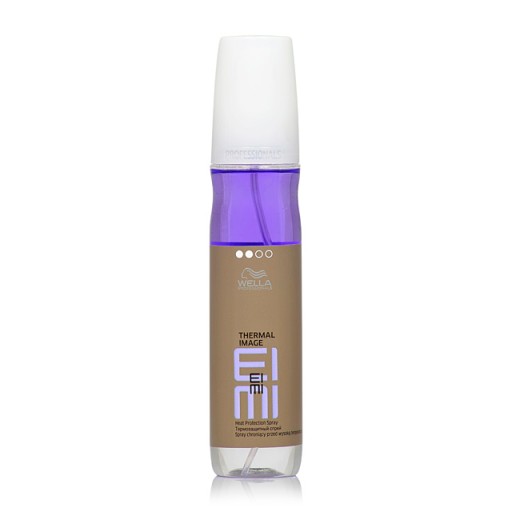 Wella Eimi Thermal Image to spray, dzięki któremu możesz korzystać ze sprzętów do stylizacji na gorąco, bez obaw, że negatywnie wpłynie to na kondycję Twoich włosów. Produkt ten zapewnia kosmykom skuteczną ochronę nawet przy temperaturze równej 220ºC.