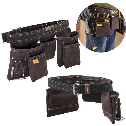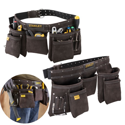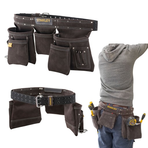 Skórzany pas monterski Stanley został wykonany z bawolej skóry wysokiej jakości, co zwiększa jego żywotność i odporność na niekorzystne warunki - ponadto skóra została poddana specjalnej obróbce, dzięki czemu jest gładka i wygodna w użytkowaniu. Akcesorium posiada 5 dużych toreb, w których użytkownik może przechowywać najważniejsze elementy i być zawsze gotowym do działania. Pas ma dodatkowe nity i podwójne szwy zamieszczone w narożnikach, które zwiększają możliwości eksploatacyjne. Dodatkowo osprzęt jest wyposażony w łuk uchwytu młotka, pozwalając na komfortowe noszenie młotka różnej wielkości. Mniejsze kieszonki przeznaczone są na takie elementy, jak śrubokręty, długopisy czy gwoździe.