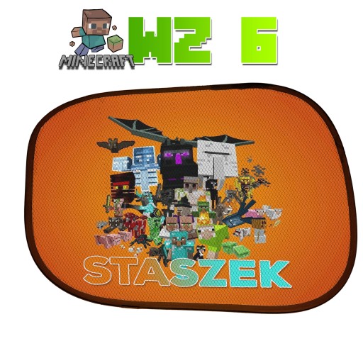 DWIE OSŁONKI NA BOCZNE SZYBY AUTA Z MOTYWEM MINECRAFT + TWOJE IMIĘ!