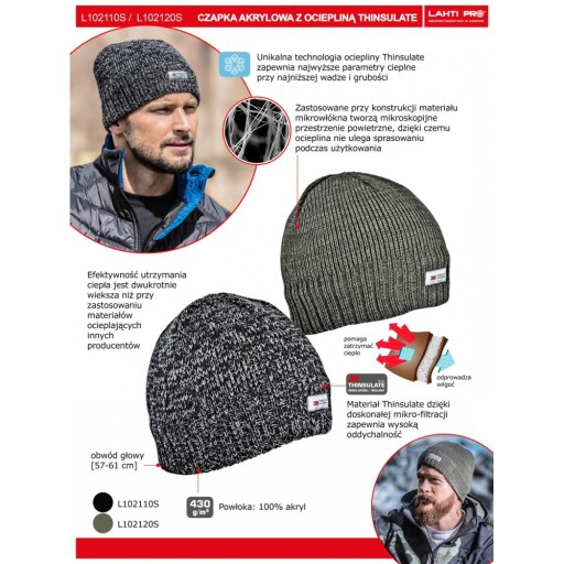 CZAPKA AKRYLOWA Z OCIEPLINĄ THINSULATE ZIELONA MELANGE,LAHTI