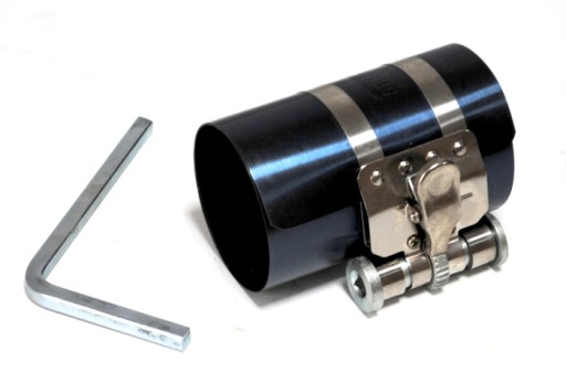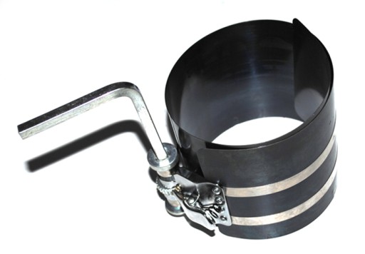 Przyrząd ułatwia wkładanie tłoka do cylindra zapewniając równomierne ściśnięcie pierścieni