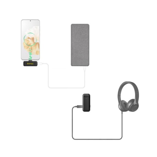 Miniaturowy zestaw bezprzewodowych mikrofonów dla dwóch osób (dwa nadajniki i odbiornik). Zaprojektowany z myślą o smartfonach i tabletach ze złączem USB-C i systemem operacyjnym Android. Komunikacja radiowa 2,4 GHz do 50 m w otwartej przestrzeni, aktywna redukcja szumu, możliwość prowadzenia bieżącego odsłuchu oraz praktyczna usztywniana stacja dokująca z funkcją powerbanku.