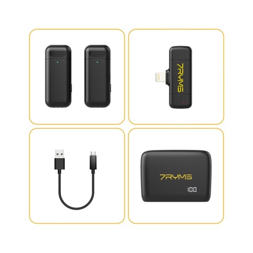 7Ryms Rimo S1 to miniaturowe mikroporty – bezprzewodowe mikrofony przeznaczone do urządzeń Apple ze złączem Lightning, takich jak iPhone czy iPad. Zestaw składa się z dwóch nadajników oraz odbiornika wpinanego bezpośrednio w telefon czy tablet. Doskonale spiszą się w trakcie tworzenia vlogów, przeprowadzania wywiadów czy streamowania treści w mediach społecznościowych.