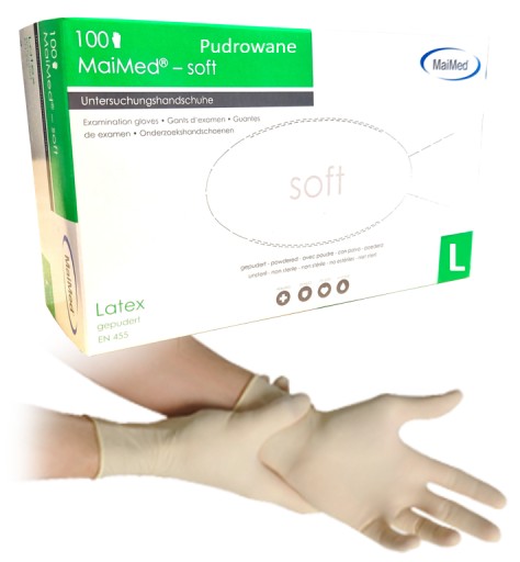 JEDNORAZOWE RĘKAWICE LATEKSOWE L PUDROWANE - 100 SZTUK - MAIMED GmbH NIEMCY