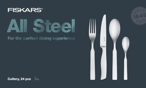 - Zestaw sztućców Fiskars z serii All Steel wykonany jest z wysokiej jakości stali nierdzewnej w fabryce Sorsakoski w Finlandii
