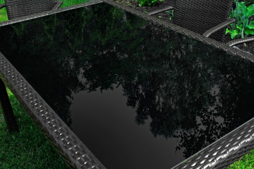 - Szklany blat idealnie komponuje się z technorattanowymi wykończeniami krawędzi stołu, które chronią szklany blat przed przypadkowymi uszkodzeniami.