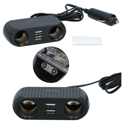 ✅ Podwójny rozgałęźnik / rozdzielacz z przewodem + 2x USB 12/24V