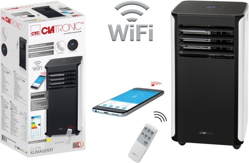 Clatronic CL to wydajny klimatyzator przenośny który jest idealnym rozwiązaniem na upalne dni. Urządzenie nie wymaga instalacji na stałe. Klimatyzator schłodzi 400 m3 powietrza w godzinę. Regulowane klapki pozwalają na ustawienie kierunku przepływu powietrza w pionie i poziomie. 24h timer umożliwia zaprogramowanie uruchomienia urządzenia np. przed powrotem do domu, tak aby pomieszczenie w którym się znajduje było odpowiednio schłodzone i gotowe na nasz powrót. Programowanie urządzenia można przeprowadzić poprzez WiFi, które pozwala łatwo połączyć się przy pomocy smartfona lub tabletu za pośrednictwem bezpłatnej aplikacji. Bezprzewodowa łączność sprawia, że sterowanie klimatyzacją jest jeszcze łatwiejsze i pozwala na kontrolę urządzenia z dowolnego miejsca na świecie. Urządzenie posiada również funkcję sterowania za pomocą głosu oraz tradycyjnie - poprzez wbudowany nowoczesny panel sterowania i bezprzewodowy pilot.