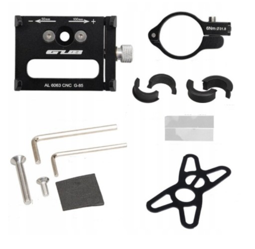 Solidny uchwyt wykonany w całości z aluminium, mocowany zaciskiem do kierownicy lub mostka. Wszystko łączone na śruby, co daje gwarancję stabilności nawet w trudnych warunkach jazdy. Możliwość montażu w pionie jak i w poziomie. Dopasowany do telefonów o szerokości od 50 do 100 mm.