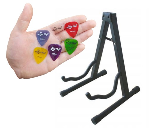 ⭐ Zestaw: Statyw na Gitarę + 6 Kostek Różnej Grubości ⭐