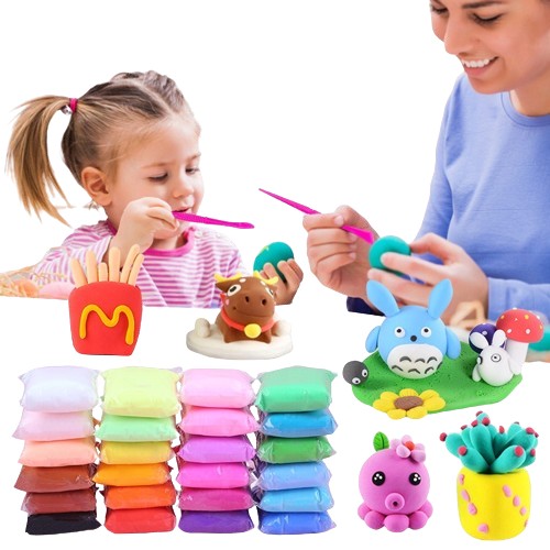 Super Clay to zestaw 24 kolorów masy plastycznej. Zabawka pozwala na wielogodzinne rozwijanie kreatywności dziecka.Jeśli dopiero zaczynasz przygodę z Super Clay zacznij od tworzenia prostych form, a następnie rozwijaj wyobraźnię tworząc bardziej złożone konstrukcje i figurki. Zabawa masą plastyczną w widoczny sposób poprawia zdolności manualne.W zestawie znajdziesz 3 szpatułki, z różnym zakończeniem. Ułatwią one tworzenie precyzyjnych cięć masy w bezpieczny sposób.Jeśli stworzysz z masy kulkę możesz traktować ją jako piłkę. Masa pozwala na jej delikatne odbijanie się od powierzchni, dlatego też poprawi zdolności koordynacji wzrokowo ruchowej.Lekka i elastyczna masa stworzona została z tworzywa PVC oraz gliceryny, nie budzi rąk oraz nie przykleja się do nich.Zestaw zawiera: