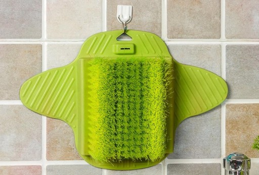 ✔️Wystarczy umieścić szczotkę na płaskiej powierzchni, polać płynem do kąpieli, a 1000 delikatnych włosków, dokładnie wyczyści i wymasuje stopę.