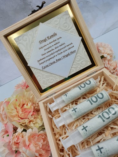 Przedstawiamy Państwu skrzynkę „Zastrzyk Gotówki”. Tak wręczony prezent na długo zostanie w pamięci solenizanta.