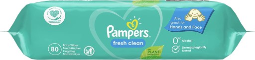 Chusteczki Pampers Fresh Clean zostały przetestowane dermatologicznie i zatwierdzone przez dermatologów z organizacji Skin Health Alliance. Ponieważ chusteczki Pampers Fresh Clean zostały zaprojektowane z myślą o delikatnej skórze dziecka, nie zawierają alkoholu, barwników.