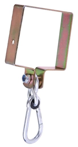 Mocowanie idealnie nadaje się do huśtawek czy hamaków. Przeznaczone jest do mocowania na kwadratowej belce drewnianej. Obejma posiada otwory do przykręcania oraz karabińczyk. Dzięki teflonowej wkładce huśtanie jest ciche i przyjemne. Mocowanie posiada śrubę z nakrętką zabezpieczającą przed samoczynnym odkręceniem. Obejma do huśtawki jest produktem, który stabilnie podwiesi siedzisko i zapewni bezpieczeństwo.