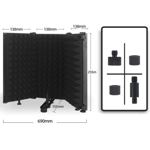 Pianka dźwiękochłonna do mikrofonu studyjnego do wokalu 3 panele