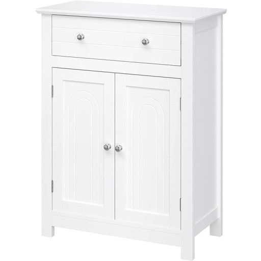 - Biała szafka w stylu rustykalnym połączona z metalowymi uchwytami dopasuje się do każdego pomieszczenia i funkcji - w łazience, przedpokoju, salonie, sypialni itp.