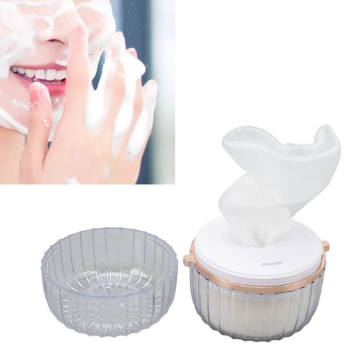 3. Z GĄBKĄ DO TWARZY: Opakowanie zawiera gąbkę do twarzy z gęstą siatką, skutecznie pochłaniającą kurz ze skóry. Miękka i wygodna, rozszerza się pod wpływem wody.