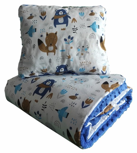 Komplet z jednej strony uszyty jest z wysokiej jakości bawełny. Z drugiej zaś strony z milutkiego,przyjemnego w dotyku minky o bajecznych kolorach.