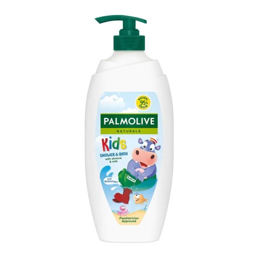 Palmolive Naturals żel i płyn do kąpieli dla dzieci posiada delikatną formułę i zawiera naturalnie wystepujące składniki nawilżające. Zachowuje naturalna równowagę pH skóry. Testowany dermatologiczny. Opakowanie nadające się do recyklingu ( z wyłączeniem pompki).