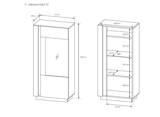 - Oświetlenie LED za dopłatą do: SZAFKI RTV / WITRYNA WYSOKA / WITRYNA NISKA