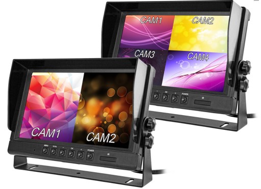 - Monitor 9" kolor, 1/3" CMOS, 1024x600, NTSC/PAL, 2 niezależne kanały CH1/CH2 (złącze 4pin), contrast: 500:1, jasność: 350cd/m2
