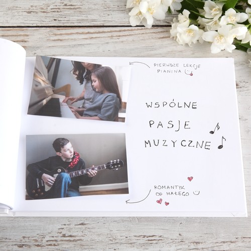 Karty księgi mogą być wypełnione poprzez wklejanie zdjęć z dzieciństwa, zapisywanie cennych wspomnień i miłych chwil spędzonych razem.