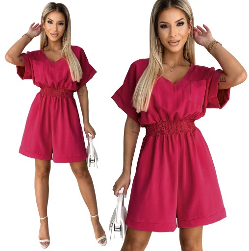 ЖЕНСТВЕННЫЙ СВОБОДНЫЙ ЭЛЕГАНТНЫЙ КОМБИНЕЗОН-ШОРТЫ С V-ОБРАЗНЫМ ВЫРЕЗОМ