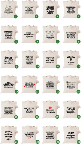 Oczywiście jeśli na torbie jest imię lub miesiąc zmienimy je dla Ciebie. Również słowo "pielęgniarka" czy "położna" możesz zmienić na "pielęgniarz" lub "oddziałowa". Każdy wzór w wersji damskiej możemy dla Ciebie wykonać w wersji męskiej. Nie zapomnij poinformować nas o zmianie!