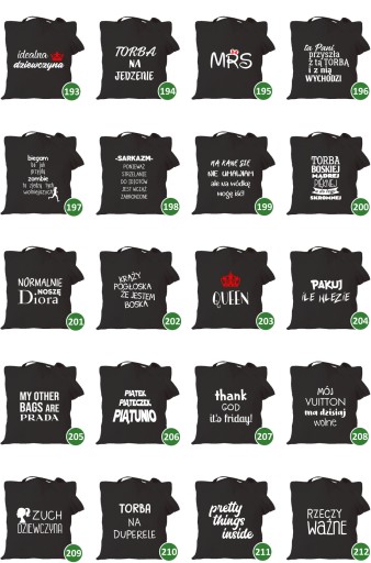 Po zakupie torby wybierz numer wzoru (lub wzór ze zdjęcia głównego) i prześlij do nas w wiadomości lub mailem.