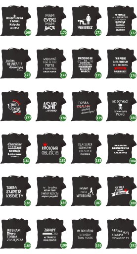 Nasze torby mogą pełnić klasyczną rolę torby, np. na zakupy, jak również jest to doskonały, bo niecodzienny i zaskakujący sposób na zapakowanie prezentu! W tym zakupionych na innych naszych aukcjach koszulek, bluz, bokserek, kubków lub poszewek i poduszek.