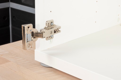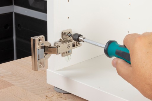Za pomocą dwóch wkrętów z łbem wpuszczanym możemy teraz ponownie mocno przykręcić zawias.
