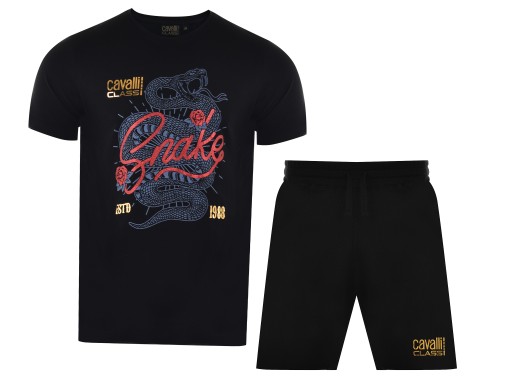 CAVALLI CLASS SPORT - to sportowa linia stworzona przez włoskiego projektanta Roberto Cavalli. Tym razem marka prezentuje zestaw - T-Shirt plus spodenki. Producent zadbał o wysoką jakość materiałów i precyzję wykonania.