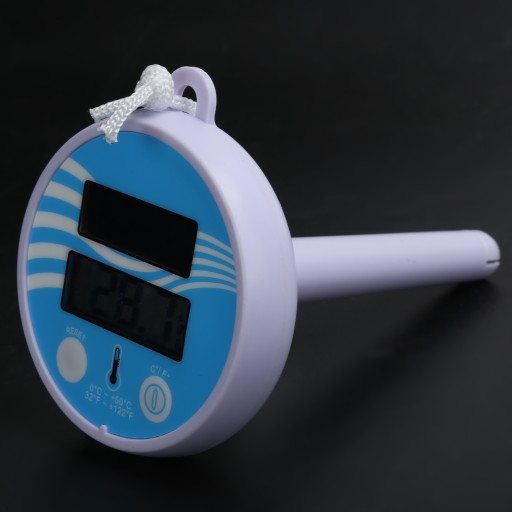 4. Jest wyposażony w pływającą linę, która może swobodnie unosić się na wodzie w basenie lub może być zamocowana w rogu basenu. Podczas używania skuteczna część termometru musi być umieszczona w wodzie.