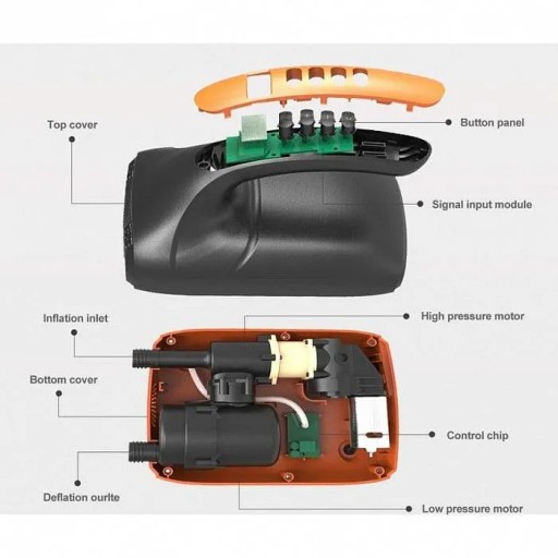Pompa SUP/Kite, pompa turbinowa.Bezstopniowa regulacja ciśnienia od 1 do 20 psi.