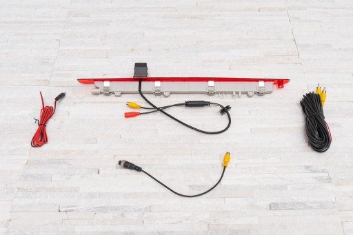 W zestawie znajdują się kamera cofania w obudowie światła stop, kabel RCA i kabel zasilający.