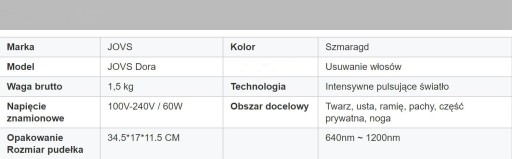 Opakowanie zawiera urządzenie do depilacji włosów JOVS DORA.