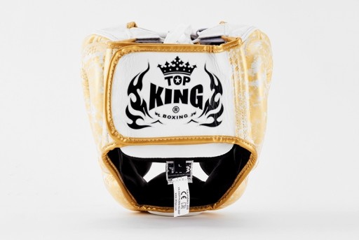 Kask bokserski TOP KING SUPER STAR to wysokiej jakości produkt, wykonany ze skóry naturalnej. Wypełnienie zrobione jest z wielowarstwowej pianki, która posiada świetną absorpcję uderzeń i rozkłada siłę ciosu na większej powierzchni. Kask zbudowany jest w taki sposób by skutecznie chronić głowę, w tym uszy, kości policzkowe i podbródek. Gładki materiał, którym kask wyściełany jest od wewnątrz, umożliwiaj łatwe wkładanie i zdejmowanie go z głowy. Zapięcie na szeroki rzep i sznurek na czubku głowy pozwalają lepiej dopasować sprzęt do użytkownika. Kask nie ogranicza pola widzenia podczas walki. Model SUPERSTAR jest dostępny w kilku wariantach kolorystycznych z charakterystycznym nadrukiem w gwiazdki. Doskonale sprawdza się podczas sparingów w kickboxingu, boksie, Muay Thai, Krav Maga i MMA. Kaski sparingowe TOP KING cieszą się uznaniem i renomą zarówno wśród zawodowców jak i amatorów. Zapewniają wysoki poziom bezpieczeństwa i komfortu podczas treningów i sparingów. Tajska marka TOP KING należy do najbardziej cenionych producentów sprzętu do sportów walki na świecie.