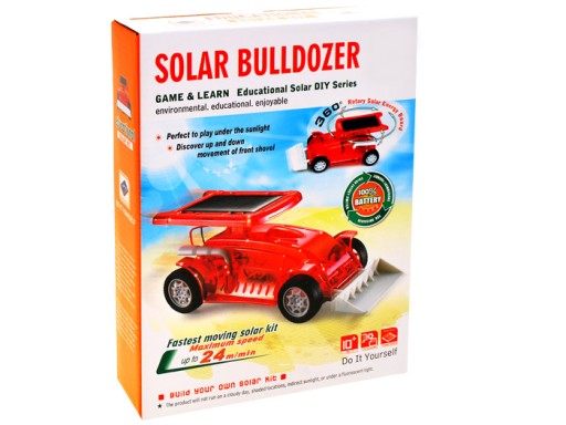 Totalna nowość, kreatywna zabawka do samodzielnego złożenia dla majsterkowiczów. Zestaw solarny SOLAR BULLDOZER solarny pojazd to edukacyjna zabawka do samodzielnego składania, zasilana światłem słonecznym.
