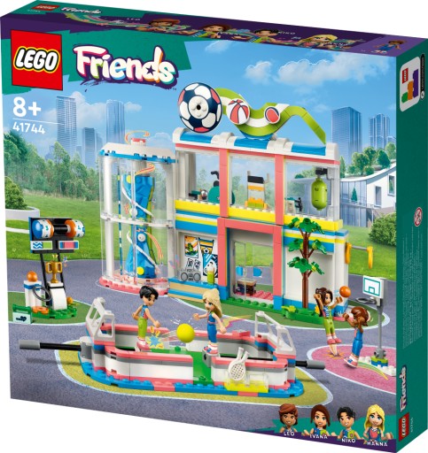 Spraw przyjemność kochającym sport dzieciom w wieku od ośmiu lat dzięki zestawowi LEGO Friends Centrum sportowe (41744). Zestaw zawiera cztery minilaleczki i mnóstwo akcesoriów. Obejmuje też boisko, które można przekształcić, zamieniając bramki i siatki do różnych dyscyplin sportowych. Zestaw zawiera również uchwyty na minilaleczki i różne piłki, dzięki czemu dzieci mogą naprawdę bawić się postaciami. Po treningu piłki nożnej zamień bramki na siatkę tenisową i pochwal się mistrzowskim serwisem. Następnie załóż obręcz do koszykówki i naucz się rzucać do kosza. Jest też tablica wyników i miejsce do bezpiecznego przechowywania piłek. W budynku centrum sportowego dzieci mogą odwiedzić siłownię, ściankę wspinaczkową i szatnię. Podkręć dobrą zabawę Dzieci mogą cieszyć się łatwym i intuicyjnym budowaniem dzięki aplikacji LEGO Builder. Mogą w niej przybliżać i obracać model w 3D, zapisywać zestawy i śledzić postępy. Oto miasto Heartlake nowej generacji Zachęć dzieci do rozwijania zainteresowań, odkrywając przed nimi nowy świat LEGO Friends i różne postacie, które się w nim znajdują.